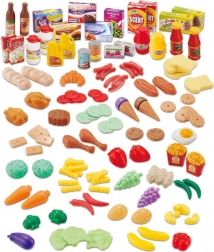 Sada obsahuje: 120 různorodých prvků, včetně ovoce, zeleniny, pečiva, svačin, nápojů a obalů.