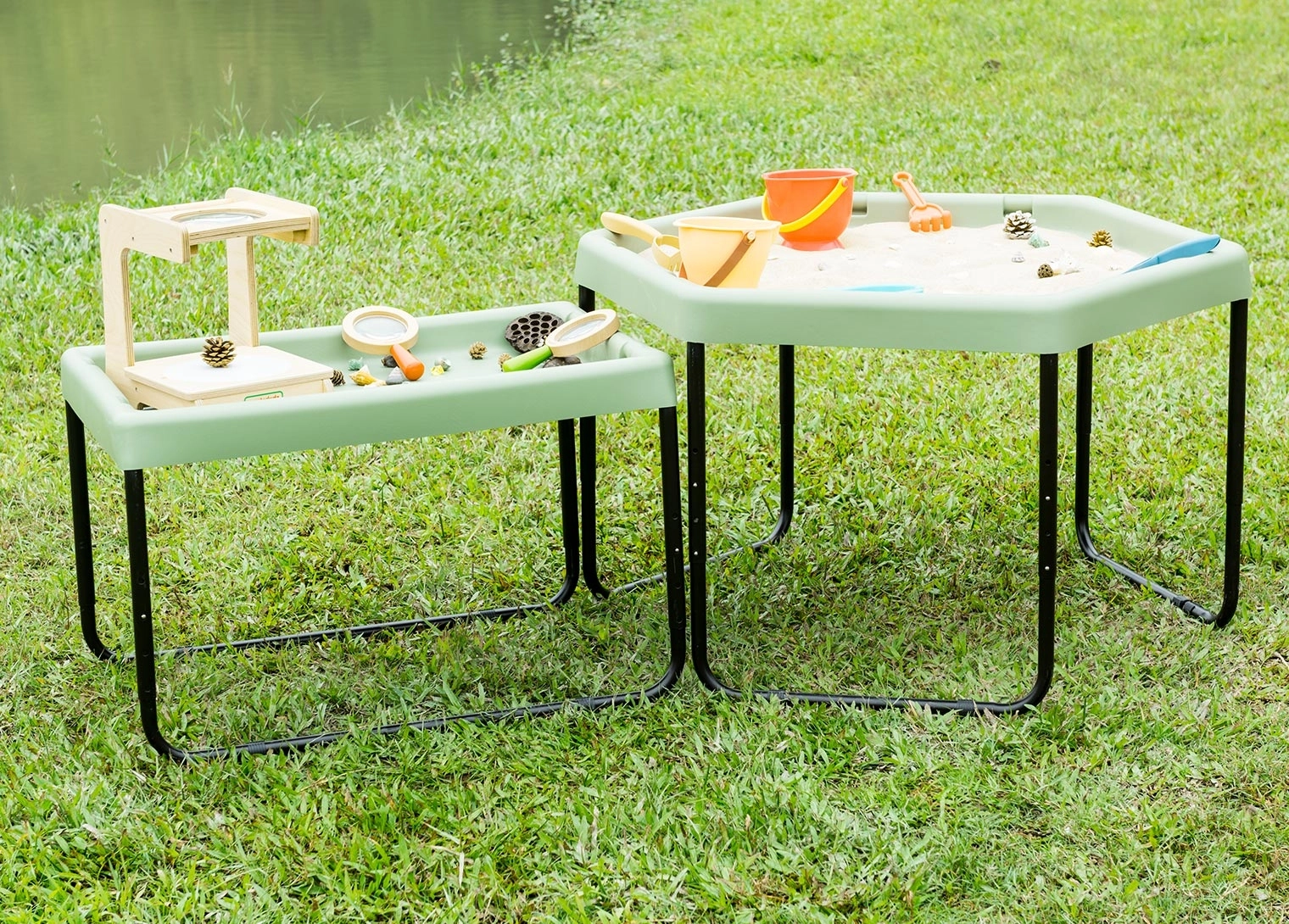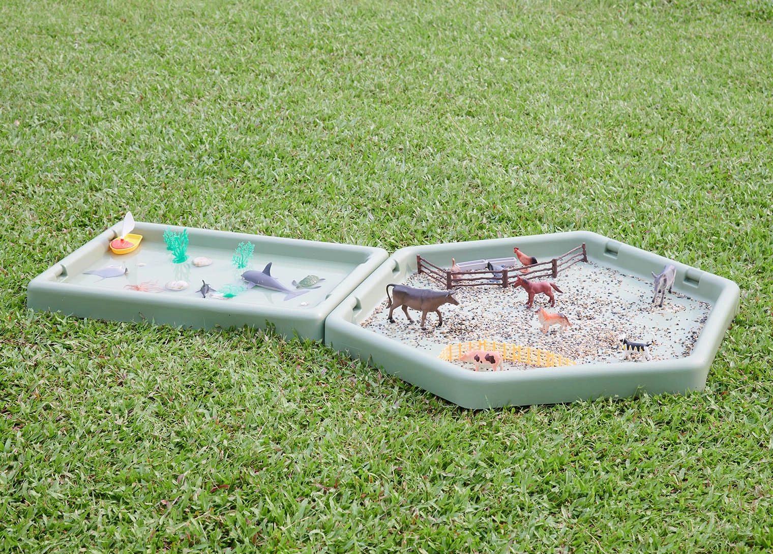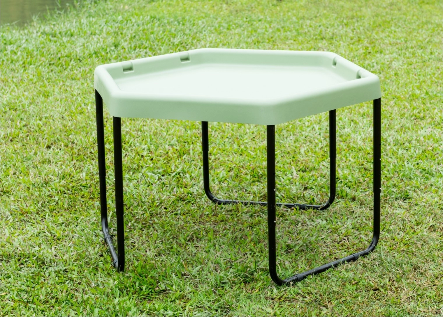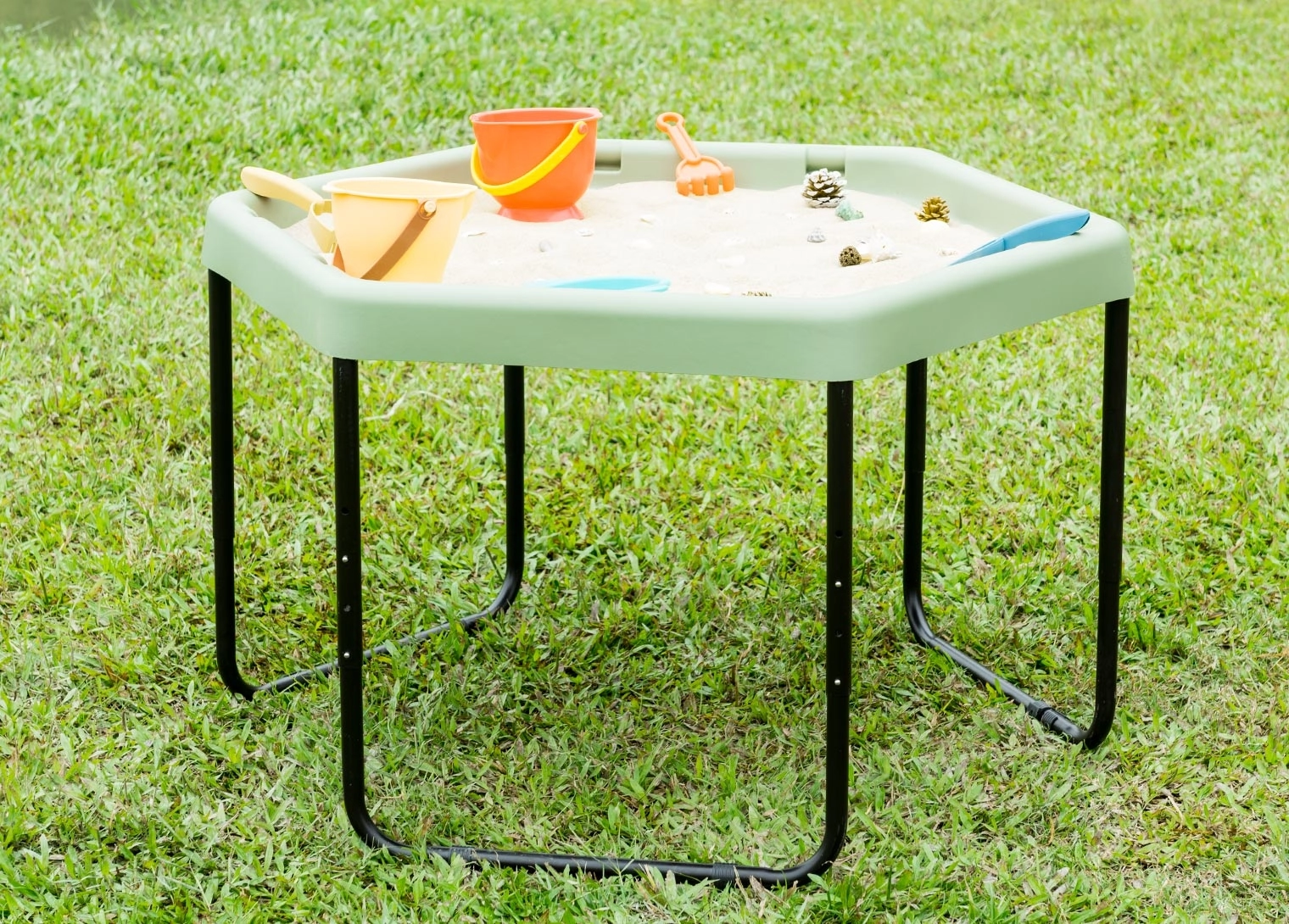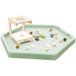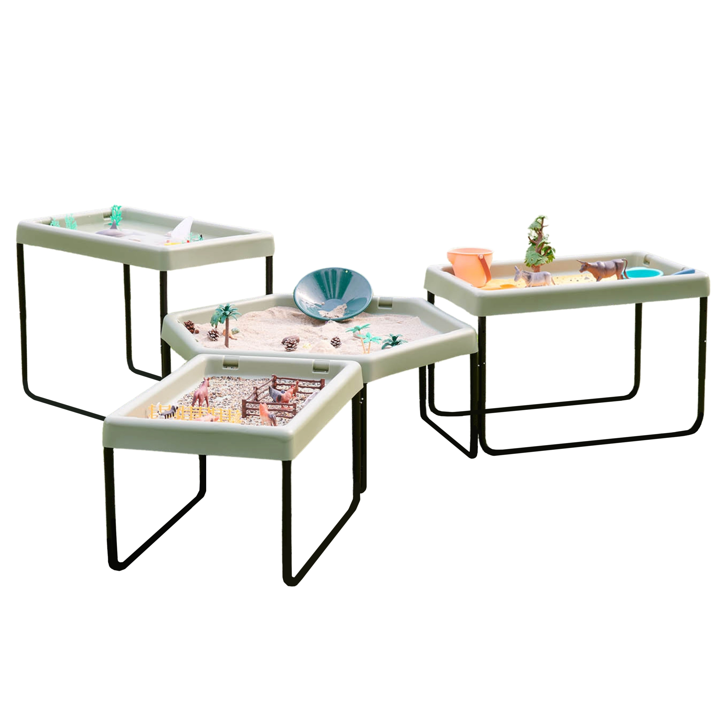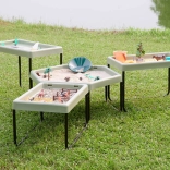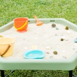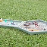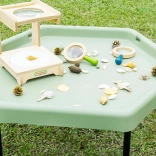 Hexagonální stolek umožňuje dětem rozvíjet kreativitu při hře s pískem, vodou nebo malými tematickými světy.