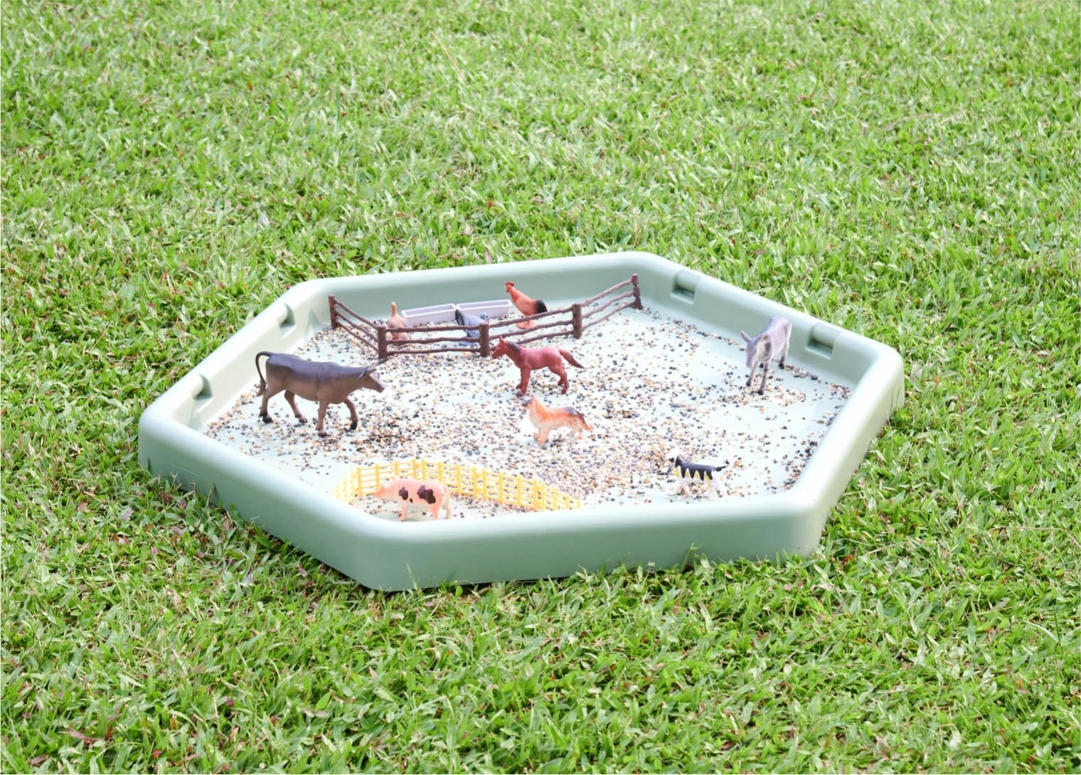 Vysoké okraje zabraňují rozptýlení písku, vody nebo jiných materiálů, což usnadňuje udržení pořádku při hře. Nese v sobě potenciál pro rozvoj motoriky, smyslového vnímání a objevování okolního světa.