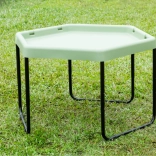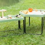 Stolek je lehký a snadno přenosný, což usnadňuje jeho použití na různých místech, jako jsou zahrady nebo dětské koutky.