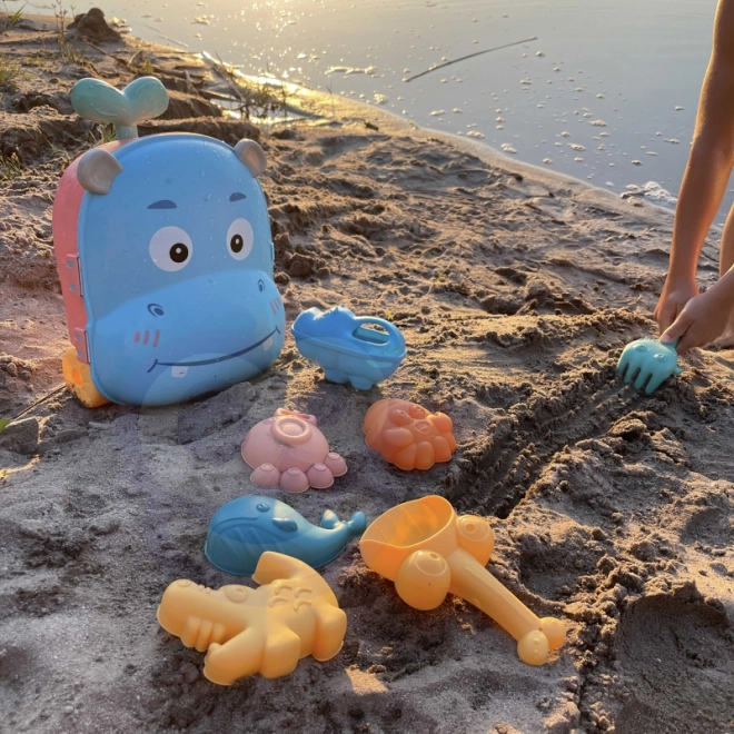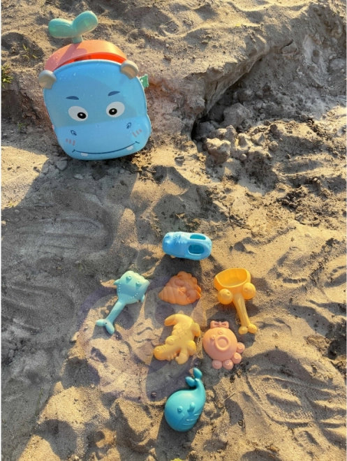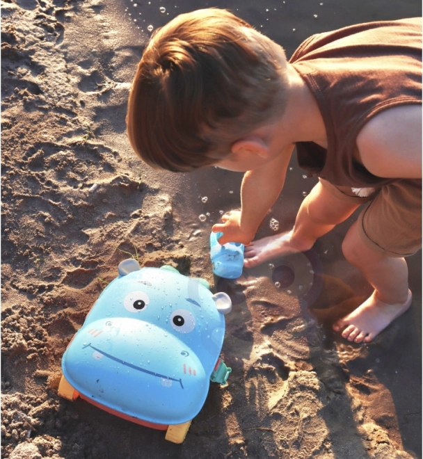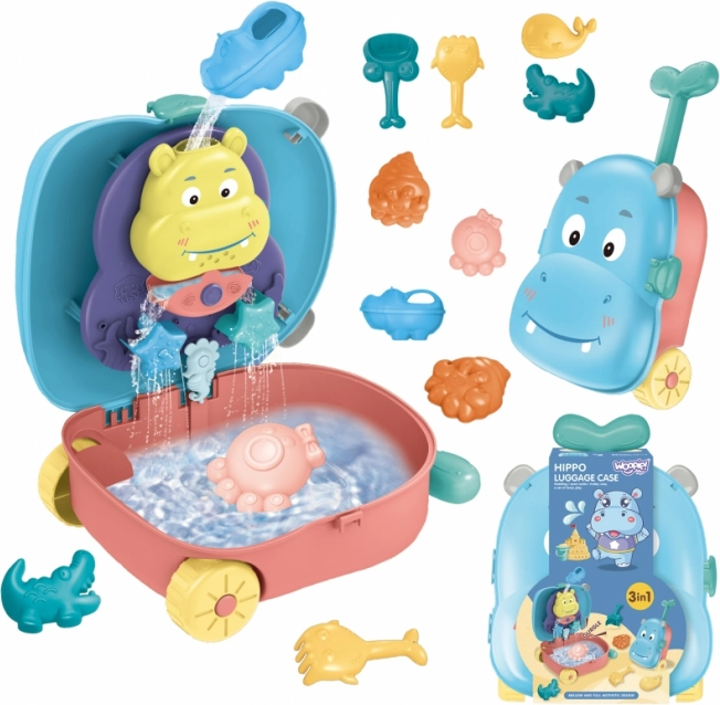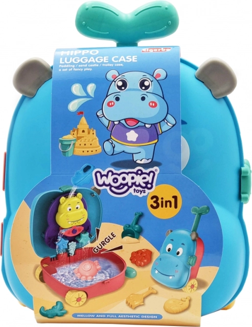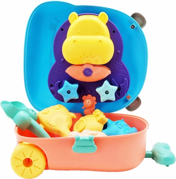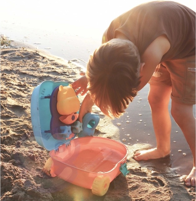 Sada 3 v 1 - vše je zabaleno v kufru, který obsahuje doplňky do písku a vodní hračku. Jednoduše položte kufr na záda, naplňte dno vodou a pomocí hrnku nalijte vodu do hlavy a sledujte, jak voda stéká dolů. Tento typ hry rozvíjí smysly dítěte a umožňuje mu soustředit se na hraní. Doplňky umožňují kompletní hru na písku, a to i ve dvou! Hračka splňuje všechny požadavky pro hraní venku!