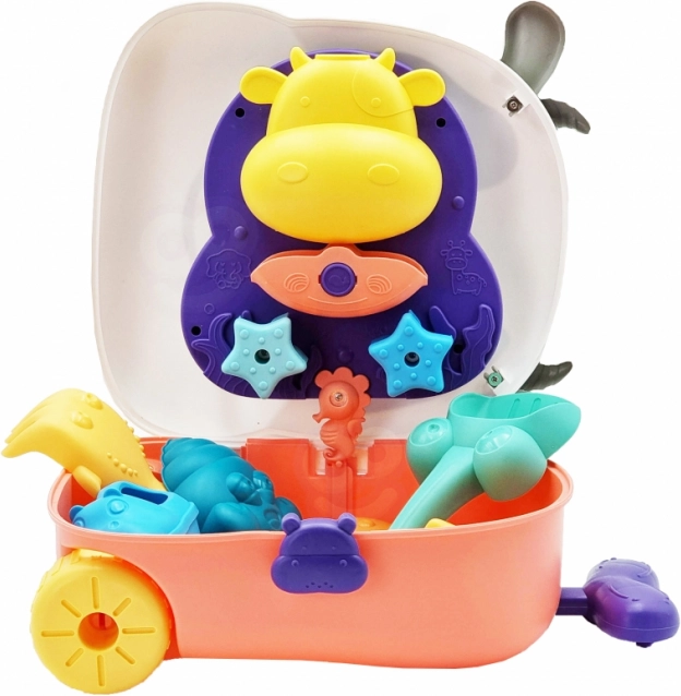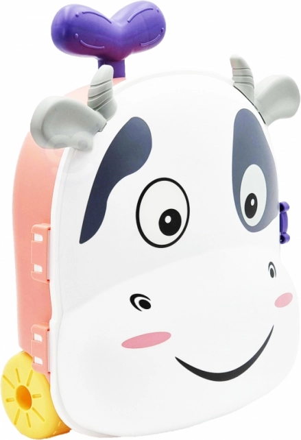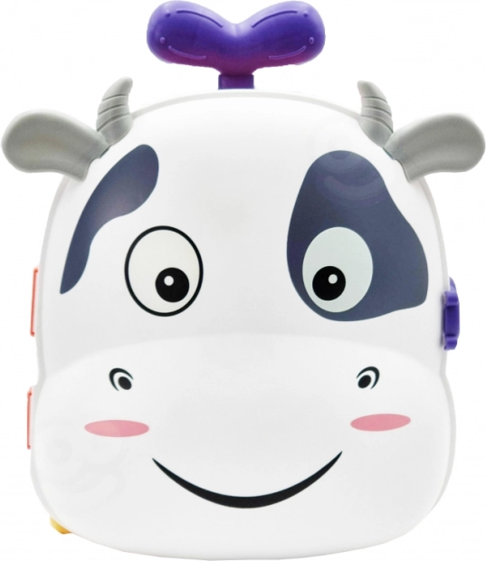 Roztomilý kufřík ve tvaru kravičky od značky WOOPIE spojuje hned tři zábavy v jednom: přenosný kufřík, sadu na písek a vodní hru. Stačí naplnit spodní díl vodou, nalít vodu do horní části a sledovat, jak protéká a stéká – skvělé pro rozvoj smyslů a sou-středění. Ideální na pláž, do písku i na cesty.
