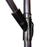 Slunečník je vybaven robustní konstrukcí z práškově lakované oceli, která zajišťuje výjimečnou odolnost proti povětrnostním vlivům.