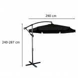 Velký zahradní slunečník o průměru 290 cm poskytuje široký stín, ideální do zahrad nebo na terasy. Je vybaven mechanickým systémem otvírání, který umožňuje snadné a rychlé skládání i rozkládání. Stabilní a odolná konstrukce z práškově lakované oceli vydrží i silnější vítr.