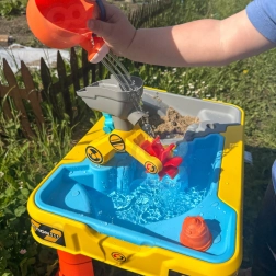 Dvojitá komora umožňuje současné hraní s vodou i pískem – ideální pro smyslové objevování a nekonečné scénáře stavební zábavy.