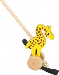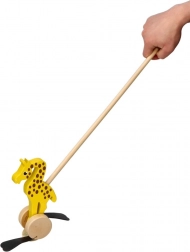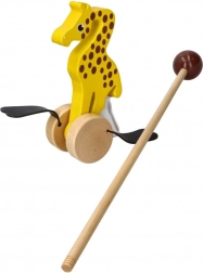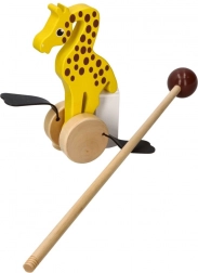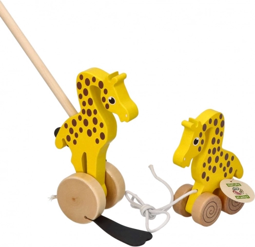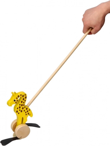Tato kvalitní dřevěná žirafa je ideálním společníkem pro děti od 18 měsíců. Vyniká pevnou konstrukcí, hladkým povrchem a veselým designem, který děti motivuje k pohybu. Při tlačení se boční "tlapky" u kol rytmicky pohybují, což vytváří atraktivní vizuální efekt a podněcuje přirozenou zvědavost.