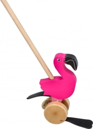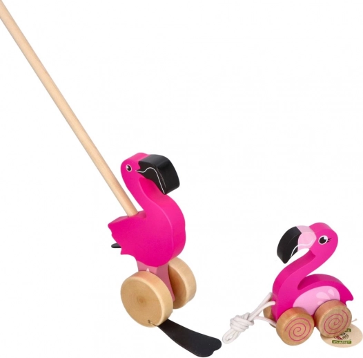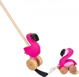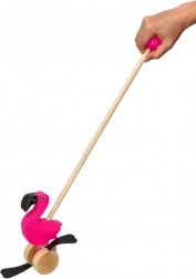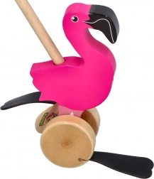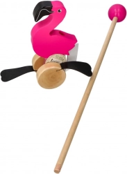 Dřevěný flamingo na tyči je ideální společník pro první krůčky. Díky hladkým kolečkům a stabilní konstrukci se snadno tlačí, zatímco pohyblivé prvky vytvářejí zábavný efekt, který děti motivuje k chůzi a objevování.