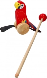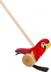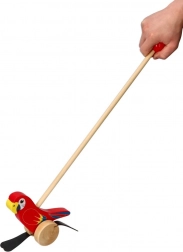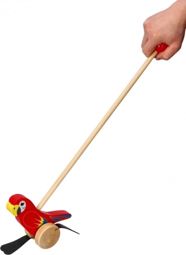 Roztomilý dřevěný papoušek na tyči je ideální společník pro první krůčky dětí od 18 měsíců. Při tlačení se kola hladce odvalují a křidélka se pohybují, což podporuje přirozený pohyb a hravou motivaci k chůzi. Hračka je z odolného dřeva, má pohodlnou tyč o délce 47 cm a kompaktní rozměry 15,5 × 10,5 × 6,5 cm. Splňuje normy CE a nabízí stabilní jízdu, barevný design a bezpečné zpracování.