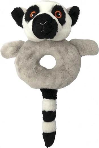 Tato plyšová chrastítko ve tvaru lemura kombinuje bezpečnou zábavu a pohodlí pro nejmenší. Díky otvoru uprostřed se dětem snadno drží i drobnými ručičkami, měkký materiál láká k mazlení a jemné chřestění stimuluje sluch a pozornost. Ideální společník do kočárku, postýlky i na cesty.