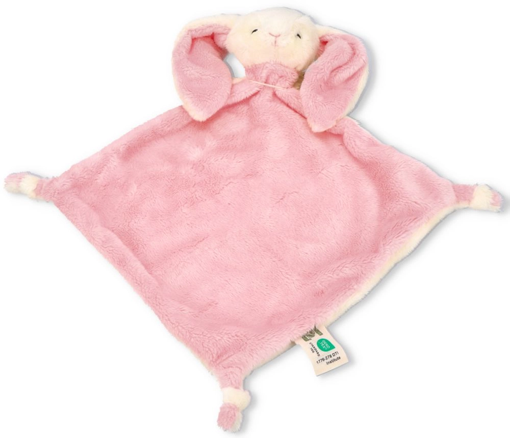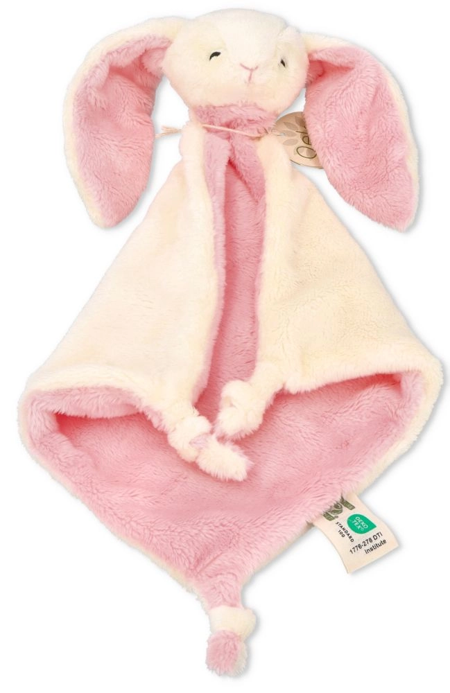 Tento růžový muchláček s hlavičkou králíčka poskytuje dětem pocit jistoty a pohodlí doma i na cestách. Díky měkkému povrchu a uzlíkům v rozích se dobře uchopuje i nejmenším ručkám a pomáhá při samostatném usínání.