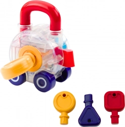 Edukační sada autíček s klíči je výborná hračka pro malé objevitele. Obsahem sady jsou tři záchranářská autíčka - ambulance, hasičské auto a policejní vůz. Každé autíčko má speciální zámek, který děti mohou otevřít pomocí barevných klíčů. Tato interaktivní hračka pomáhá v rozvoji logického myšlení, koordinačních dovedností a poznávacích schopností dítěte. Hračka je vyráběna z kvalitních, bezpečných materiálů, které zaručují dlouhou životnost. Díky průhledné konstrukci děti vidí, jak funguje mechanismus zámku, což je velmi poutavé a vzdělávací. Autíčka mají tichá kolečka, což umožňuje plynulou a komfortní hru na různých površích. Barvy a design stimulují smysly a podporují kreativitu. Sada je balena v estetické krabici s okénkem, ideální jako dárek.