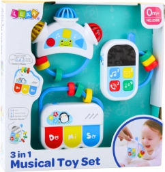 Sada hudebních hraček 3v1 je zábavná i vzdělávací pomůcka pro děti. Každý z obsažených nástrojů - hudební telefon, klávesnice a tamburína - je navržen tak, aby podporoval rozvoj sluchu, motoriky a manuálních dovedností od nejútlejšího věku. Sada nabízí různé zvuky, melodie a režimy, které umožňují dětem pronikat do fascinujícího světa hudby.