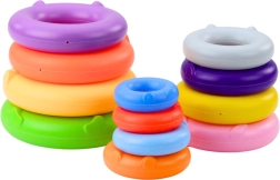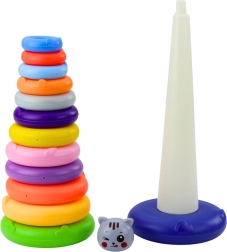 Tato hračka se skládá z široké, stabilní základny, vysokého trnu a 13 barevných kroužků, které dítě skládá samo a vytváří tak působivou věž. Na vrcholu se nachází figurka sladké kočky, která dítě navíc povzbuzuje ke hře a tvoří atraktivní vizuální prvek.