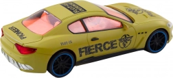 Toto sportovní auto zaujme svým agresivním vzhledem inspirovaným vojenskou estetikou a matným povrchem doplněným černými detaily. Odolná konstrukce a kvalitní materiály zajišťují, že je vhodné pro intenzivní hraní jak doma, tak venku. Nevyžaduje baterie, což z něj činí jednoduchou hračku připravenou k akci a skvělý doplněk do dětské sbírky vozidel.