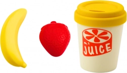 Součástí balení jsou i pestré plastové ovoce: jahoda, banán a limetka, a také hrníček na koktejl. Všechny prvky jsou bezpečné a skvěle padnou do dětských ruček.