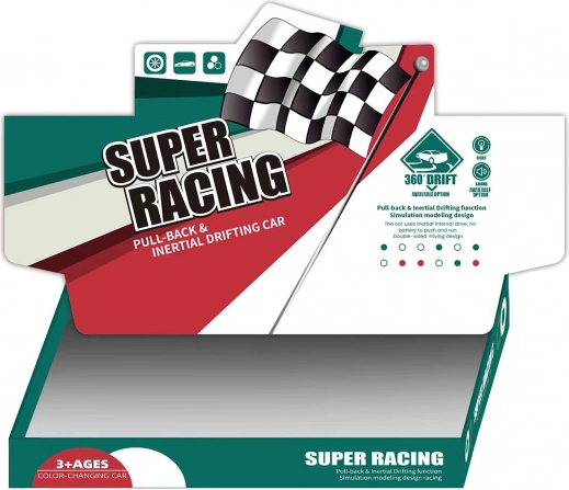 Zábavné závodní auto s pohonem na setrvačník pro malé i velké automobilové nadšence. Dostupné v 4 barevných variantách, aby každý našel svůj oblíbený model.