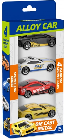 Sada 4 kovových závodních autíček na zpětné natažení pro vzrušující domácí závody. Ideální dárek pro milovníky aut!