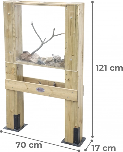 Díky impregnovanému jehličnatému dřevu je produkt trvanlivý i při venkovním nasazení. Tabule je skvělá pro rozvoj jemné motoriky, kreativity a písemných dovedností, ať už v mateřské škole, družině nebo na zahradě. Transparentní plocha podporuje práci se světlem a perspektivou – děti malují a zároveň sledují okolní přírodu.