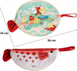 Hrací podložka ve tvaru ryby se po hraní snadno složí na zipové pouzdro, kam se vejdou všechny komponenty. Kvalitní dřevěné zpracování a bezpečné materiály zaručují dlouhou životnost i odolnost při každodenním používání.
