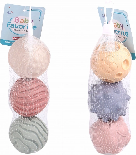 Připravte se na spoustu zábavy s naší sadou texturovaných míčků. Tato kolekce obsahuje tři míčky, každý s unikátní texturou, které přinášejí nové možnosti hry a rozvoj hmatových dovedností: