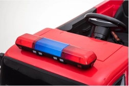 Červená barva a realistické detaily, jako jsou otevírací dveře a siréna, přinášejí autentický pocit opravdového hasičského vozu.