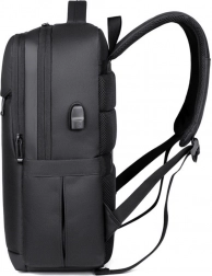 Batoh má dvě hlavní komory, z nichž jedna je vybavena přihrádkou na notebook a vestavěným portem USB, který umožňuje pohodlné nabíjení mobilních zařízení (powerbanka není součástí balení). Dále je na přední straně kapsa na zip, a na zádech batohu další diskrétní kapsa na dokumenty nebo cenné předměty.