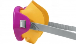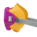 Upravitelný pásek zajišťuje pohodlné nošení a bezpečné upevnění kolem hlavy pro bezstarostné plavání.