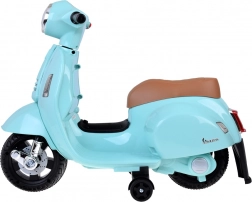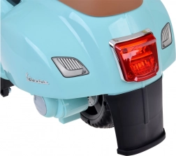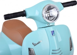 Skútr Vespa na akumulátor je díky své fantastické stylistice a malým rozměrům ideální pro domácí i venkovní použití. Bez problému zvládne jízdu po parku nebo na dětském hřišti. Postranní kolečka zajišťují stabilitu během jízdy, přispívají k bezpečnosti a příjemnému zážitku vašich dětí. Díky snadnému nasedání a vysedání ze sedadla si děti mohou pohodlně užívat jízdu. Skútr má svítící světla během jízdy a tlačítko na řídítkách s dětským zvukem klaksonu.