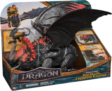 Prozkoumejte svět Berk se setem, který oživí vaše oblíbené filmové momenty. Stisknutím tlačítka se Red Death roztočí do akce – mává potrhanými křídly a zavře mocné čelisti. Umístěte minifigurku Bezzubky do tlamy, uvolněte ji a objevte tajný schovávač v břiše draka pro další minismoky.