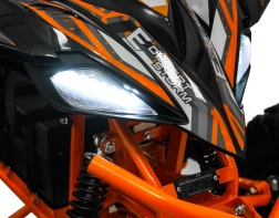 Bezkomutátorový motor 800 W napájený baterií 48 V 20 Ah poskytuje svižnou akceleraci a dojezd pro vaše dobrodružství. Automatická převodovka (vpřed/vzad) s reversem, klíčkové startování a přehledný displej (rychloměr, denní počítadlo, stav nabití) zvyšují komfort i bezpečnost.