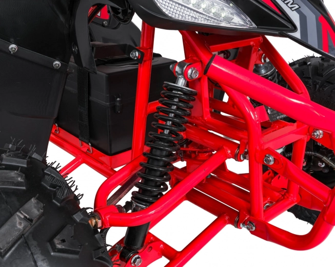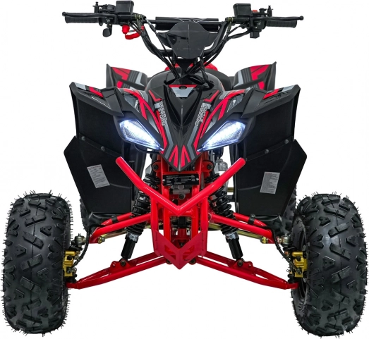 Dvojité přední a zadní nastavitelný tlumič pohlcují nerovnosti. Pneumatiky 16x8.0-7 s hlubokým vzorkem zajišťují přilnavost a stabilitu.
