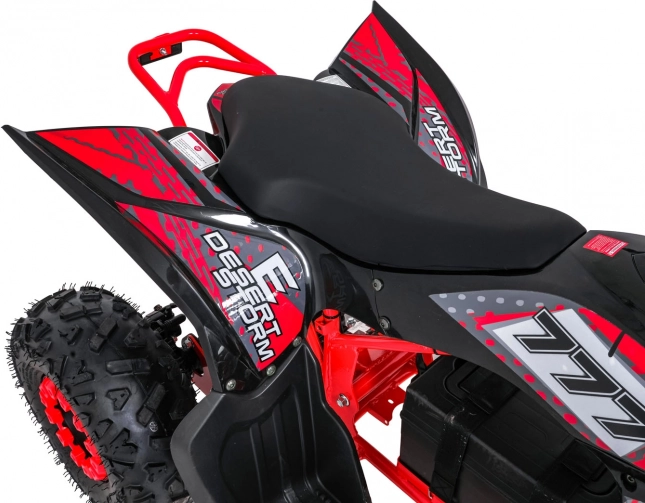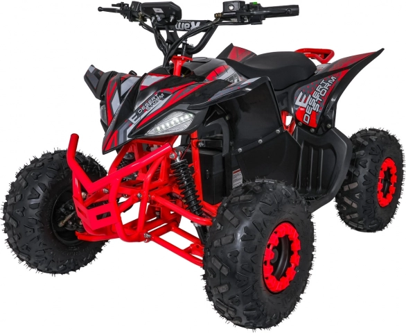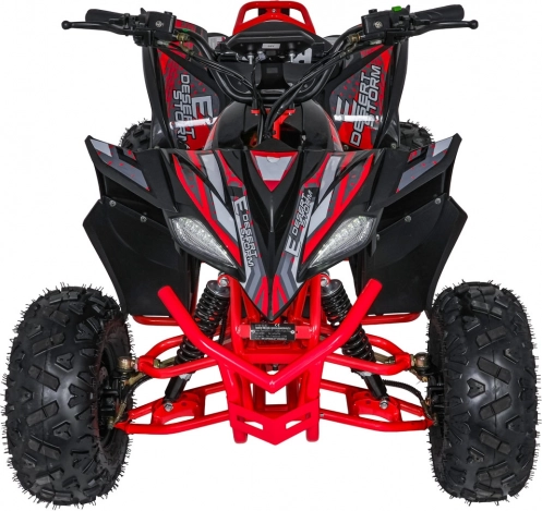 Model DESERT STORM LIFT je navržen pro zábavu i sebejistou jízdu v terénu. Práškově lakovaný rám, vyztužená zadní kyvná vidlice a kvalitní pružné plasty zvládnou náročné podmínky, zatímco široký rozchod a hluboký vzorek pneumatik zajišťují skvělou trakci. Ovládání je jednoduché: automatická převodovka s jízdou vpřed/vzad, startování klíčkem a přehledný displej.
