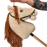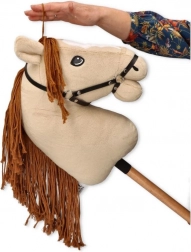 Objevte kouzlo hry s koníkem na tyči Gracja v elegantním béžovo-medovém odstínu. Díky měkkému plyši je příjemný na dotek, má realistické detaily očí a nozder, odnímatelné uzdění a bohatou provazovou hřívu. Dřevěná rukojeť z masivu zajišťuje vyšší odolnost a dlouhou životnost. Ideální pro kreativní a pohybovou hru dětí od 3 let.