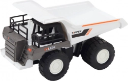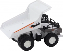 Pevný stavební sklápěč s pohyblivou nákladní korbou nabízí dětem, které se zajímají o pracovní stroje a stavební práce, hodiny zábavy. Model v bílo-šedém provedení je obohacen o kovové prvky, které zvyšují odolnost a realistický charakter hračky.