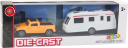 Náš model je vyroben technologií die-cast, což znamená, že karoserie je z kovu, zatímco jiné části jsou z odolného plastu. Tento výběr materiálů zajišťuje dlouhou životnost a estetiku hračky. Kempingový přívěs lze snadno odpojit, což umožňuje dětem vytvářet různé herní scénáře – od prázdninových výprav po rodinné výlety.