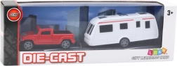 Tento zestav autíčko s karavanem je zhotovený technologií die-cast, což znamená, že karoserie auta je z kovu a některé prvky z odolného plastu. Takový výběr materiálů zaručuje trvanlivost a estetiku hračky. Karavan lze snadno odpojit od auta, což dětem umožňuje vytvářet mnoho různých herních scénářů – od prázdninových výletů po rodinné výpravy.