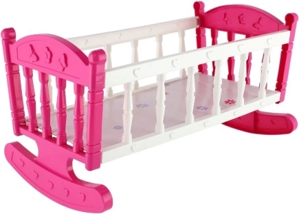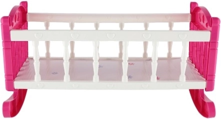 Růžová a bílá kolébka s jemnými dekory je vyrobena z odolného plastu, umožňující kolébání a uspávání panenky. Ideální pro rozvoj fantazie při hře.