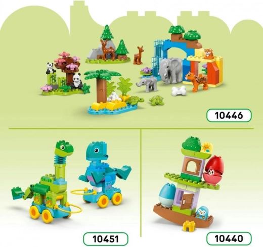Součástí jsou ruchové a otočné prvky (třepotající ploutve, mávající křídla, otáčecí krk), které podporují koordinační dovednosti, rovnováhu i učení barev a tvarů. Set je skvělým dárkem k narozeninám i pro každodenní hraní a je kompatibilní s dalšími stavebnicemi LEGO DUPLO.