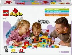 Tato chytrá 2v1 hra a stavebnice LEGO DUPLO přináší dětem zábavnou výuku formou hry. Postavte společně barevný hrad, zatočte ukazatelem a posouvejte zvířecí figurky po herním plánu. Podle barvy, na které se zastavíte, přidáte k hradu správný dílek – vyhrává týmový duch, když všechny postavičky dorazí do hradu!