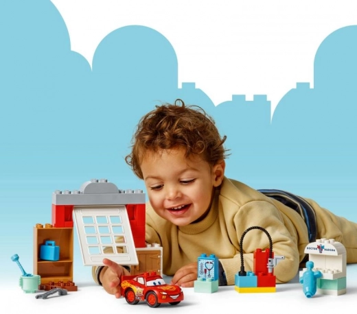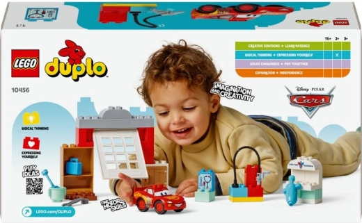 Postavte si zábavnou dílnu z filmu Disney a Pixar Auta a postarejte se o Bleska McQueena! Zábavná sada LEGO DUPLO s 35 dílky rozvíjí jemnou motoriku, koordinaci oko–ruka a kreativní hru díky otevíracím dveřím, myčce s pružnou hadicí a doplňkům, jako je klíč či skříňka.