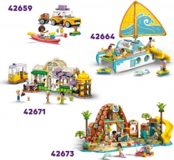 Součástí je DJ stanoviště s otočným kotoučem a mikrofonem, aby mohla zábava běžet naplno, a také opalovací krém, nápoj či nanuky pro ještě pestřejší hraní rolí. Díky aplikaci LEGO Builder mohou děti modely přibližovat, otáčet a sledovat postup stavby.