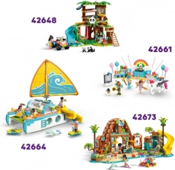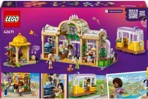 Tento okouzlující set z města Heartlake zve k objevování květin a přátelství. Děti mohou obsluhovat zákazníky v květinářství, připravovat dobroty v kavárně s kuchyní a rozvážet dobrou náladu stylovou tramvají. Čtyři postavy (Aliya, Esme, Olly a Nova) a figurka kočky rozšiřují možnosti hry a podporují sociální dovednosti i empatii.