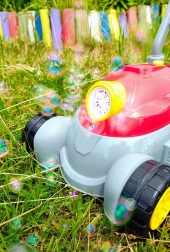 Tato dětská bublinková sekačka nabízí dva herní režimy: první se postará o nepřetržité foukání bublinek, druhý přidá světla a hudbu pro ještě větší zábavu. Stačí našroubovat přiložený roztok do spodní části, stisknout tlačítko a sledovat, jak se přední část „motoru“ promění v bublinovou show.