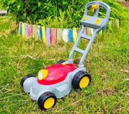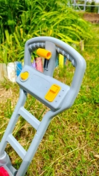 Lehká konstrukce, robustní rukojeť a velká kolečka zajišťují snadné tlačení po trávě i pevných površích. Hračka podporuje pohyb, fantazii a role-play, takže je ideální pro venkovní zábavu na zahradě, terase i v parku.