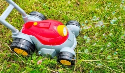 Integrovaný bublifuk vytváří množství bublinek z přední části sekačky. Roztok je součástí balení – můžete začít hned.
