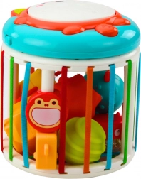 Interaktivní kostka je vybavena funkcemi jako tvarový třídič, tiskací prvky, tyče na protlačování kostek a hudební panel s světelnými a zvukovými efekty. Na vrchní části je liška s bubnem, která aktivuje zvuk po stlačení. Kostka přehrává různé zvuky a melodie, které obohacují sluchové vnímání dítěte a motivují jej k aktivitě.