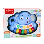 Interaktivní pianinko Słonik Modrý nabízí řadu herních režimů: od veselých melodií po zvuky stupnice a zvířat. Barevné klávesy a svítící tlačítka podněcují zvědavost a povzbuzují k interakci. Díky pohodlné rukojeti je klavír lehký a praktický – ideální pro malé ručičky. Vyrobeno z bezpečných a netoxických materiálů, vhodné pro děti od 18 měsíců.