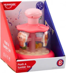 Stisknutím růžového tlačítka na vrchu se kolotoč roztočí a zvířátka se začnou točit kolem své osy, čímž vytvářejí dynamický a barevný kolotoč. Tato hračka zapojuje dětský zrak, sluch a pohyb, rozvíjejíc tak koordinaci oko-ruka a pochopení kauzality.