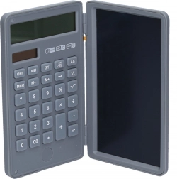 Ve zcela otevřeném stavu kalkulačka dosahuje rozměrů 18 x 15 cm, což zajišťuje pohodlné použití. Na výběr máte dvě elegantní barevné varianty: černá a šedá.