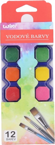 Vodové barvy 12 ks se štětcem pro kreativní malování. Ideální pro umělce i hobby nadšence.